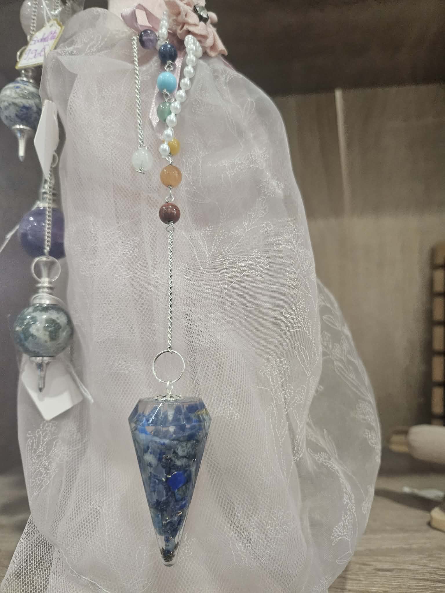 Découvrez un pendule façonné à la main en orgonite, associé au précieux Lapis Lazuli, pensé pour les amateurs d’outils énergétiques et de bien-être. Chaque pendule est unique, reflétant le savoir-faire artisanal français, et conçu pour harmoniser vos énergies avec élégance et efficacité.